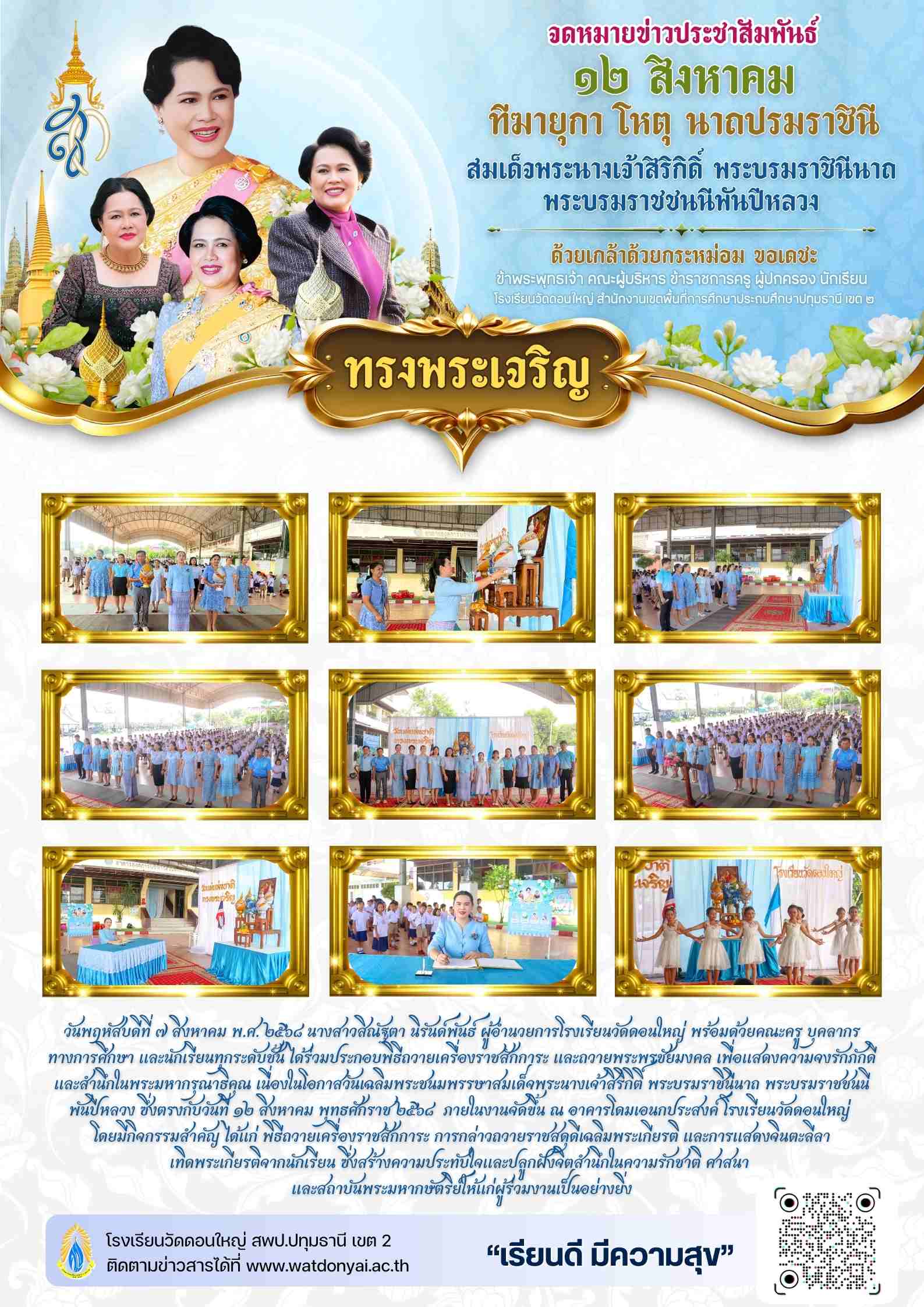 พิธีถวายเครื่องราชสักการะ และถวายพระพรชัยมงคลกิจกรรมวันเฉลิมพระชนมพรรษาสมเด็จพระนางเจ้าสิริกิติ์ พระบรมราชินีนาถ พระบรมราชชนนีพันปีหลวง ซึ่งตรงกับวันที่ ๑๒สิงหาคม พุทธศักราช ๒๕๖๘