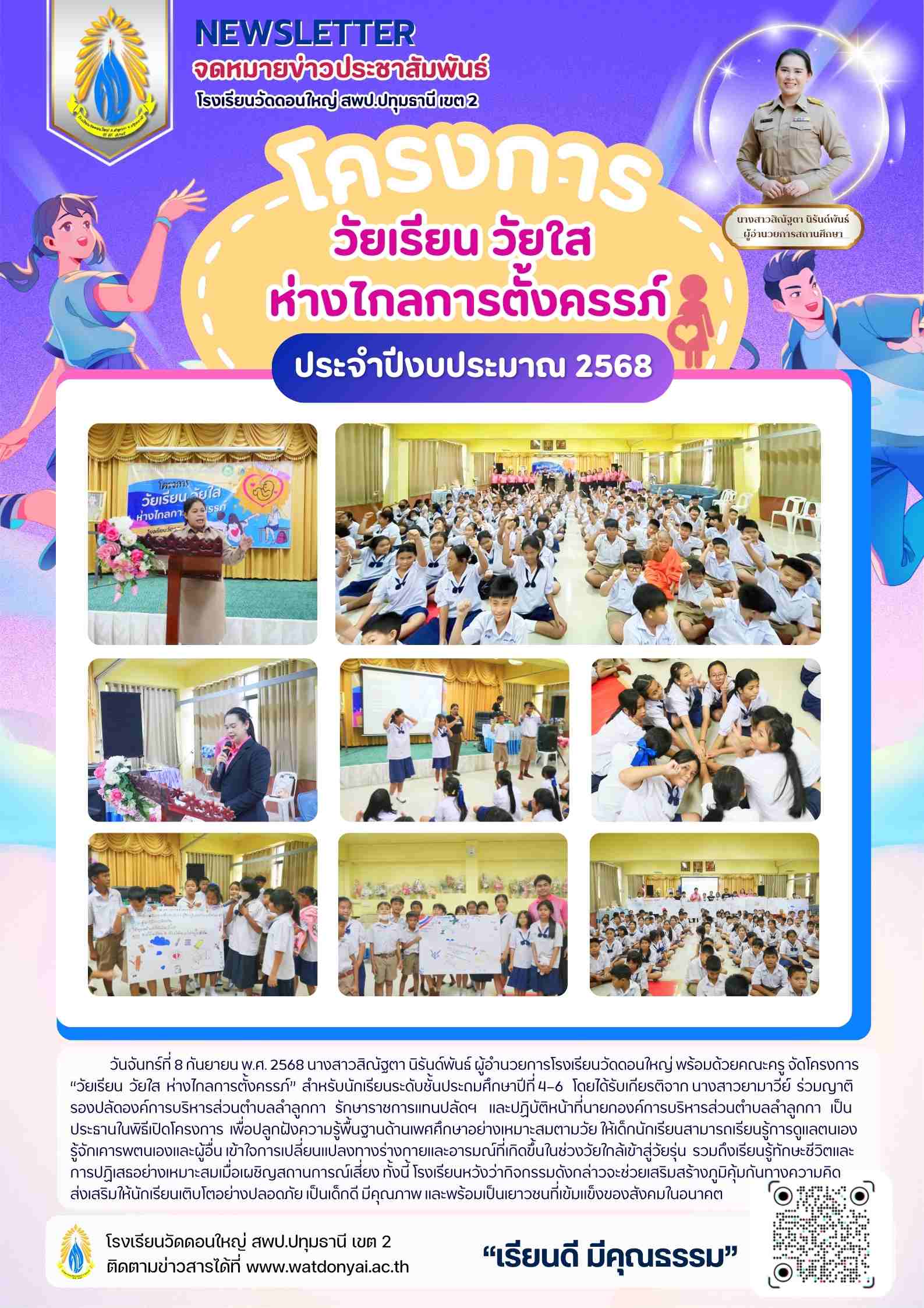 โครงการวัยเรียน วัยใส ห่างไกลการตั้งครรภ์ ประจำปีงบประมาณ 2568