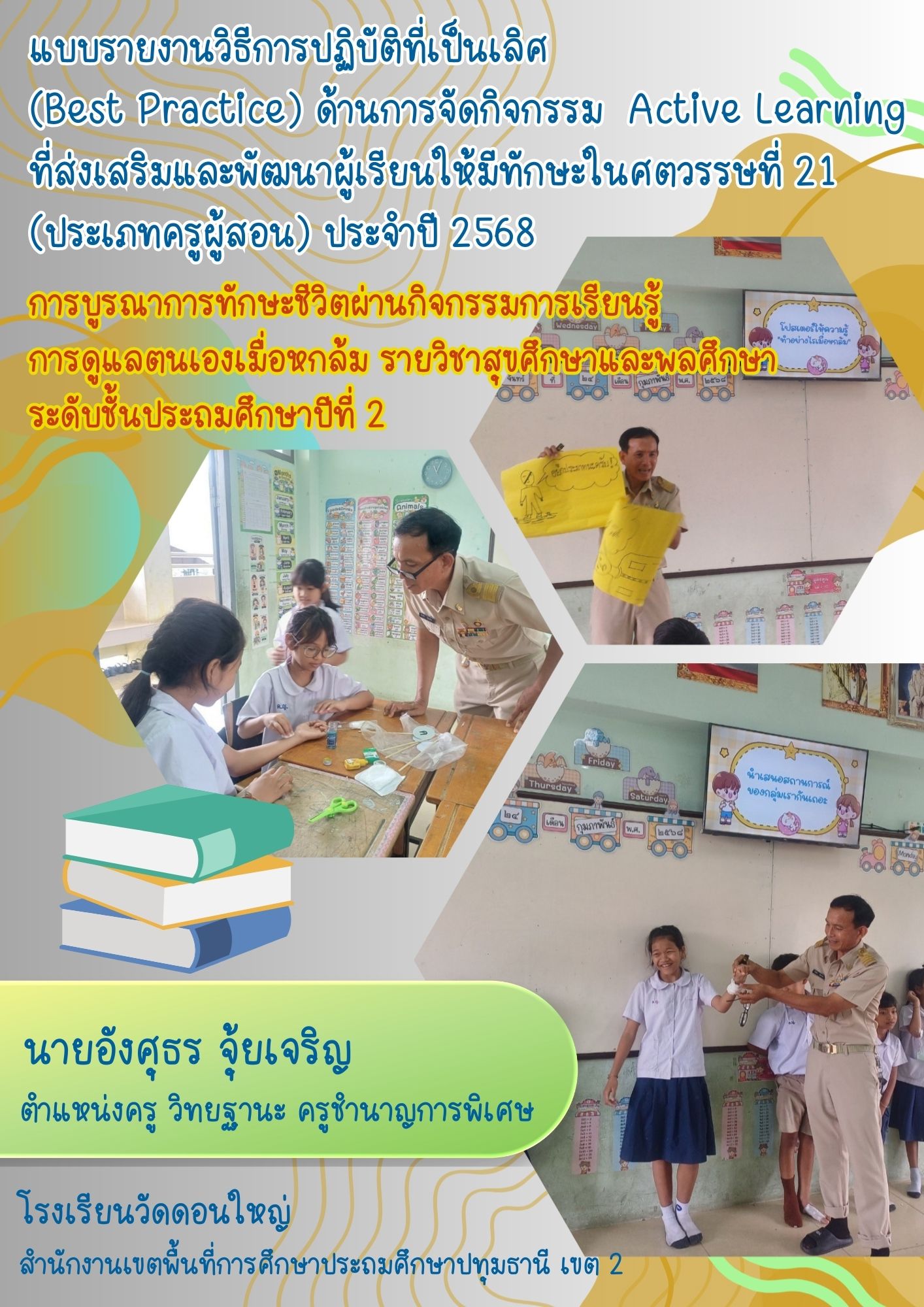 ชื่อผลงาน : วิธีการปฏิบัติที่เป็นเลิศ (Best Practice) ด้านการจัดกิจกรรม Active Learning ที่ส่งเสริมและพัฒนาผู้เรียนให้มีทักษะในศตวรรษที่ 21 (ประเภทครูผู้สอน) ประจำปี 2568