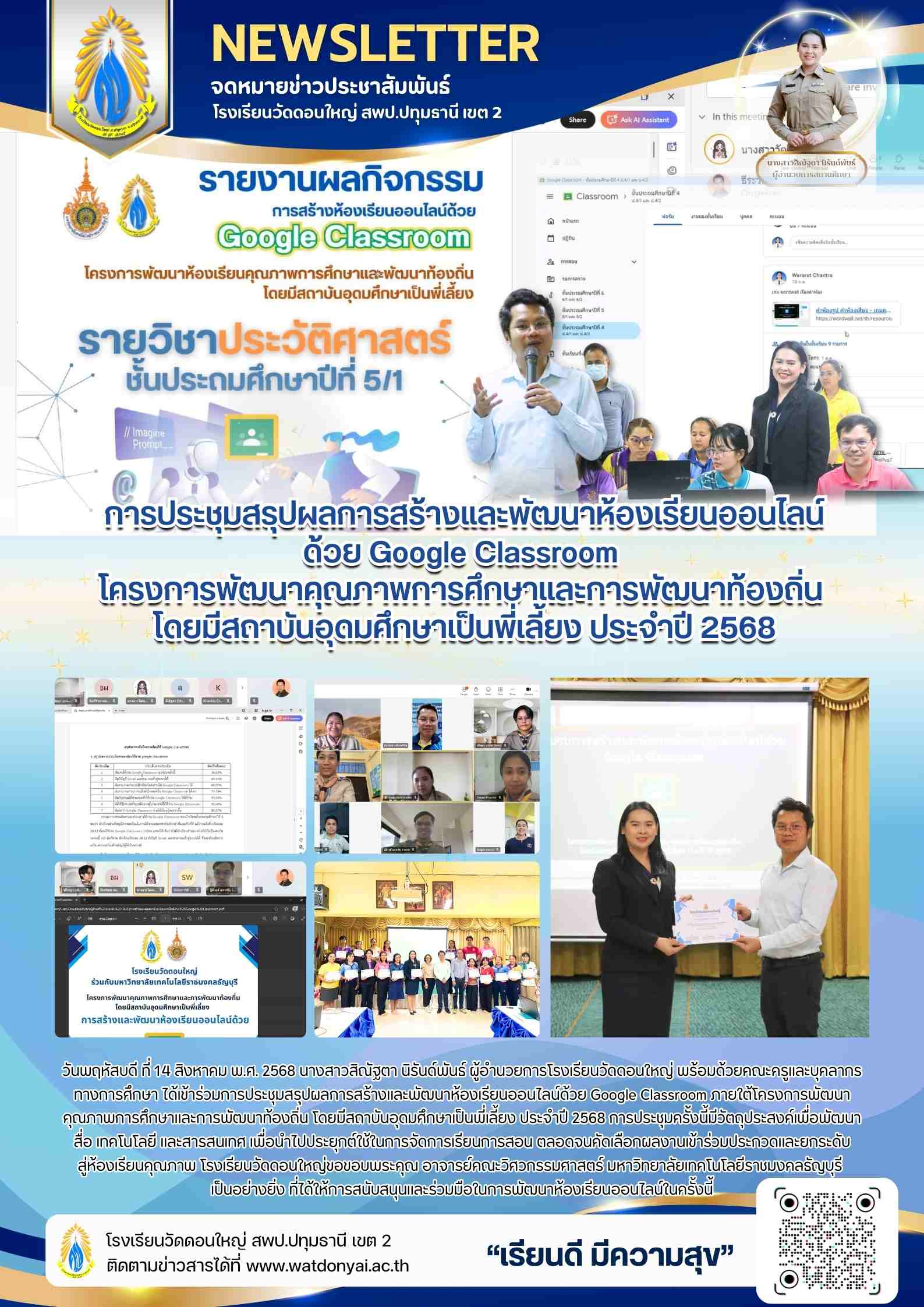 การประชุมสรุปผลการสร้างและพัฒนาห้องเรียนออนไลน์ ด้วย Google Classroom โครงการพัฒนาคุณภาพการศึกษาและการพัฒนาท้องถิ่น โดยมีสถาบันอุดมศึกษาเป็นพี่เลี้ยง ประจำปี 2568
